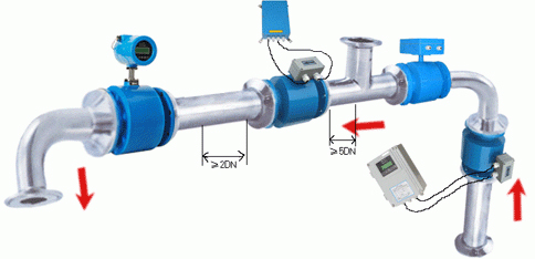 流量計前方*少要有5×D(D為流量計內(nèi)徑)長度的直管段,后方*少要有3×D(D為流量計內(nèi)徑)長度的直管段;
