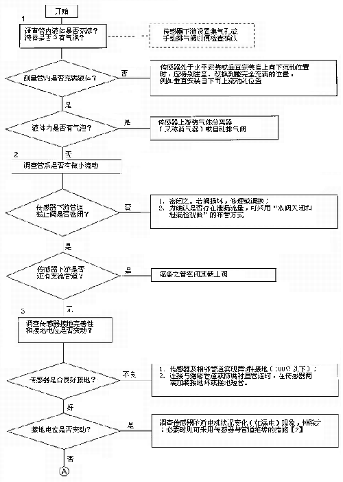 檢查流程圖*5項。信號回路絕緣下降會形成零點不穩(wěn)。信號回路絕緣下降的土要原因足,包*部位絕緣下降所引起的,但也不能排除信號電纜及其接線端子絕緣下降或破壞。因為有時候現(xiàn)場環(huán)境十分嚴酷,稍一疏忽儀表蓋、導線連接處密封不慎,彌漫著潮氣酸霧或粉粒塵埃侵入儀表接線盒或電纜保護層,使絕緣卜降。信號回路絕緣電阻檢查分別按電纜側(cè)和流量傳感器側(cè)兩郵分進行,用兆歐表測試。因信號電纜容易可先做。流量傳感器再分兩次進行:充滿液體測黽電*表面接觸電阻和個管后測量,U*絕緣電阻。