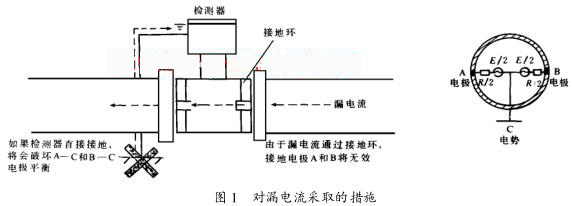 分體型電磁流量計(jì)檢測(cè)的電壓只在幾毫伏以內(nèi) ,該電壓是由流體的流動(dòng)感應(yīng)產(chǎn)生的。由于工藝管道是塑料的或有塑料內(nèi)襯的, 來(lái)自電解槽的漏電流就會(huì)影響分體型電磁流量計(jì)。當(dāng)漏電流通過(guò)分體型電磁流量計(jì)電*和接地環(huán)時(shí) ,就會(huì)產(chǎn)生一個(gè)大電流, 一旦漏電流值超過(guò)分體型電磁流量計(jì)所允許的噪聲電平 ,就會(huì)造成放大器過(guò)載,引起測(cè)量誤差。