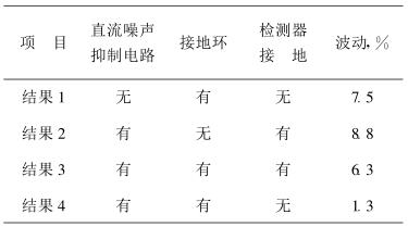 結(jié)果 4:直流噪聲抑制電路和檢測(cè)器不接地 ,接地環(huán)分流了漏電流,因而輸出波動(dòng)遠(yuǎn)小于其他結(jié)果。
