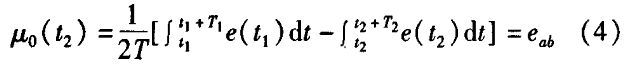 分體型電磁流量計(jì)一般都采用工頻交流電源供電,其電源電壓的幅值和頻率的變化都會(huì)給分體型電磁流量計(jì)帶來電源性干擾噪聲。對(duì)電源電壓的幅值變化,因采用多級(jí)集成穩(wěn)壓,一般而言電源電壓的幅值變化對(duì)電磁流量的測量精度影響不大。當(dāng)電源電壓的頻率波動(dòng)時(shí),雖然其波動(dòng)范圍有限,但對(duì)分體型電磁流量計(jì)測量精度影響較大。為了解決工頻干擾問題,實(shí)現(xiàn)對(duì)流體流速感應(yīng)電勢e柚信號(hào)的準(zhǔn)確測量,需利用以下基本關(guān)系:①勵(lì)磁周期為工頻周期的整數(shù)倍,即勵(lì)磁頻率為50/nHz(n為偶數(shù));②正負(fù)勵(lì)磁下的同相位采樣。圖2是對(duì)應(yīng)低頻矩形波勵(lì)磁形式下的典型電勢信號(hào)形式,按上述關(guān)系在一個(gè)勵(lì)磁周期下,若假設(shè)t。和t:點(diǎn)為工頻干擾的等效干擾點(diǎn),且采樣寬度T=T1=T2,則e –ab的基本算式為:,