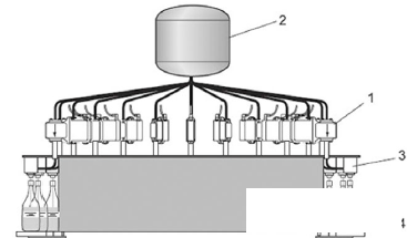 圖6 流量計(jì)和閥門(mén)的安裝位置示意圖(1代表灌裝流量計(jì))