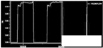 灌裝頭的*終出口部分為10~14mm的可更換縮口。通過(guò)縮口,可以產(chǎn)生背壓,一般縮口內(nèi)置蜂窩狀虹吸管,保證灌裝前后的管道滿管。從測(cè)試的流量波形上看,10mm的灌裝頭產(chǎn)生適當(dāng)?shù)淖枘嵝Ч?,流量曲線較穩(wěn)定。