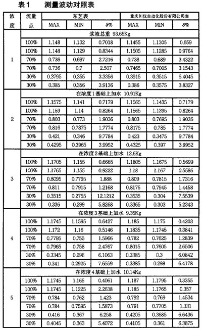 在造紙行業(yè)有大量的紙漿液體需要測量,就會用到大量的流量測量儀表,目前在造紙行業(yè)中用于測量流量的儀表,主要有電磁流量計(jì)等儀表,因?yàn)?a href="http://www.brother1314.cn">電磁流量計(jì)具有非常強(qiáng)的優(yōu)點(diǎn),所以非常適合在紙漿的流量測量中使用。在紙漿實(shí)驗(yàn)裝置上,使用串聯(lián)在同一管道上該公司生產(chǎn)的防爆型電磁流量計(jì)價(jià)格與日本東芝的防爆型電磁流量計(jì)價(jià)格測量不同濃度和流量的紙漿漿液,以驗(yàn)證其可靠性。波動率對比實(shí)驗(yàn)結(jié)果表明,該產(chǎn)品用于紙漿漿液測量時(shí)能夠很好地克服漿液噪聲。在滿流量測量時(shí),上述實(shí)驗(yàn)中各濃度下漿液測量穩(wěn)態(tài)波動率均在1%以內(nèi);其它流量下測量時(shí),由于實(shí)驗(yàn)系統(tǒng)主管道上游分流控制流速不穩(wěn),進(jìn)而導(dǎo)致測量穩(wěn)態(tài)波動率相對較大,甚至達(dá)到近7‰ 但由表1可知,在各種漿液濃度及各流量點(diǎn)下,凱銘儀表有限公司生產(chǎn)的防爆型電磁流量計(jì)價(jià)格的穩(wěn)態(tài)波動率始終與日本東芝防爆型電磁流量計(jì)價(jià)格的測量結(jié)果一致,從而表明實(shí)驗(yàn)系統(tǒng)的測量結(jié)果能準(zhǔn)確反映實(shí)際漿液流量大小。 說明:MAX、MIN分別表示該組數(shù)據(jù)測得流速的的*大值和*小值,單位m/s。