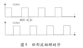 勵磁時序產生電路用于產生勵磁控制信號CON1和CON2以控制方波勵磁時序,其電路原理結構圖如圖4所示。