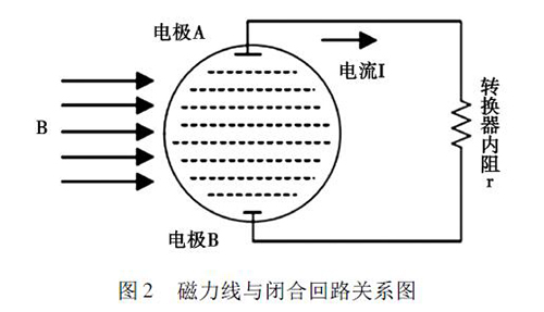 2. 1 正交干擾粘土漿流量計的磁路系統(tǒng)包含有兩個勵磁線圈,而導管內(nèi)的液體與傳感器電*及轉(zhuǎn)換器結(jié)構(gòu)組成了一個閉合的回路,如圖2 所示。理論情況下,磁力線( 圖中B) 應與閉合回路相平行,但是由于裝配過程中的誤差,導致磁力線不可能完全平行于這一閉合回路,出現(xiàn)部分磁力線成一定角度穿過回路的現(xiàn)象,這引起了即使沒有液體流動的情況下,傳感器的電*上也會產(chǎn)生感應電動勢,就形成了正交干擾的基本形式。