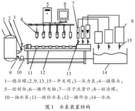 水表檢定裝置是全自動水表校驗裝置,水表檢定裝置以計算機(jī)為核心,它在需要檢定水表上方安裝攝像裝置,連接到圖像采集和高速計算器中,計算器可以識別水表指針的流量數(shù)值,自動控制水流量,實現(xiàn)水表檢驗的全自動化,針對水表檢定裝置存在的問題提出解決方案,減少水表檢定裝置在使用過程中出現(xiàn)質(zhì)量問題,讓水表檢定裝置可以不斷完善。