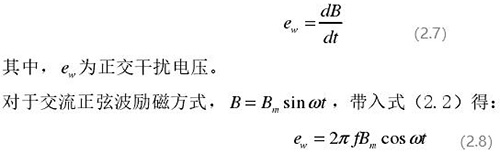 從上圖 2.5 中可以觀察到兩個電*、勵磁線圈、轉(zhuǎn)換器內(nèi)阻之間形成了一個閉合回路,將此回路稱之為初級繞組,從理論上進行分析,磁力線 B 應當平行于勵磁線圈所產(chǎn)生的磁感應線,但在實際的應用過程中由于工藝差異,因此無法達到理想狀態(tài),會產(chǎn)生磁力線穿過勵磁線圈磁感應線的情況,此時將會產(chǎn)生相應的感應電動勢,將此部分感應電動勢稱為變壓器效應。此效應同樣滿足于楞次定律,利用楞次定律進行計算可得如下電動勢: