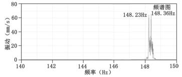 *后,通過對兩臺凝電磁流量計并列運行工況下的出口管道振動進行頻譜分析(見圖2)發(fā)現(xiàn),葉片通過頻率附近出現(xiàn)了兩個相距很近的頻率,分別為148.23Hz和148.36Hz。這兩個頻率的振動分屬于兩臺凝電磁流量計所引發(fā)的,即兩臺凝智能電磁流量計工作轉(zhuǎn)速有微小差別,導致兩個頻率分量之間也出現(xiàn)了微小差別,進而導致拍振現(xiàn)象。