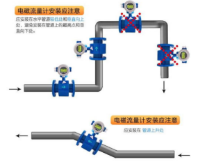 確保流量傳感器在測量時,管道中充滿被測流體,不能出現(xiàn)非滿管狀態(tài)。