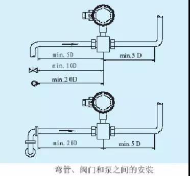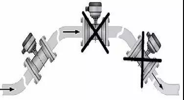 當(dāng)出口為放空狀態(tài)時(shí),傳感器不應(yīng)安裝在管道放空之處,應(yīng)安裝在較低處。傳感器安裝在管道下方處時(shí),應(yīng)保證傳感器內(nèi)被液體充滿,不能出現(xiàn)空管狀態(tài)。