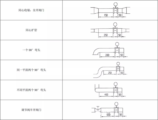 1)測量混合相流體時,選擇不會引起相分離的場所;測量雙組分液體時,避免裝在混合尚未均勻的下游;測量化學(xué)反應(yīng)管道時,要裝在反應(yīng)充分完成段的下游;