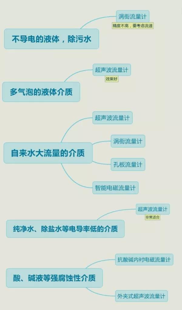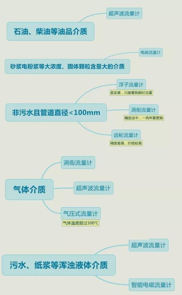 為了保證流量儀表在生產(chǎn)現(xiàn)場過程中發(fā)揮*好、*精確的使用,工業(yè)水流量計(jì)的選擇,一般情況下,必須要根據(jù)生產(chǎn)現(xiàn)場需要計(jì)量的介質(zhì)而定。這是凱銘儀表根據(jù)所測(cè)物的介質(zhì)不同所做的圖,望收藏。
