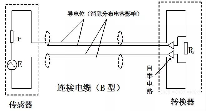 當Ri>>r,C0(連接電纜二線間分布電容)很小時,Ei≈E;當介質(zhì)電導率很低,轉(zhuǎn)換器輸入電壓衰減Ei,而C0分布電容并聯(lián)效應顯著,且波形發(fā)生畸變。當被檢測介質(zhì)電導率低,傳感器與轉(zhuǎn)換器間距長時,使用多重屏蔽電纜的概率越高。
