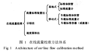 流量?jī)x表的在線標(biāo)準(zhǔn),其校準(zhǔn)條件(即流體物性、操作條件、安裝和環(huán)境條件)通常是在與現(xiàn)場(chǎng)實(shí)際使用條件充分一致的情況下進(jìn)行的。常用方法如圖1所示。