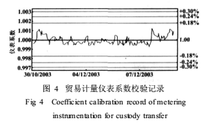兩臺(tái)儀表中一臺(tái)日常貿(mào)易交接計(jì)量?jī)x表由另一臺(tái)參比表(master meter)核查和校驗(yàn)。圖4所示是貿(mào)易計(jì)量?jī)x表流量在4000~5500m³/h時(shí)的校驗(yàn)記錄,變化在原校準(zhǔn)儀表系數(shù)的±0.180%范圍內(nèi),*大變化為0.090%,標(biāo)準(zhǔn)偏差為0.045%。