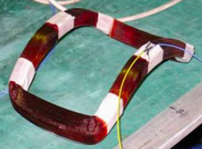 由此可見,一體式電磁流量計(jì)正常運(yùn)行需要有穩(wěn)定的磁場(chǎng),而磁場(chǎng)正是靠傳感器線圈內(nèi)的 勵(lì)磁電流來產(chǎn)生的。勵(lì)磁線圈如圖2所示。