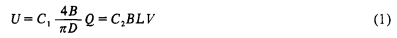 智能型電磁流量計(jì)是根據(jù)法拉*電磁感應(yīng)定律來測量導(dǎo)電性液體體積流量的儀表,其感應(yīng)電動(dòng)勢U與流速V以及流量Q的關(guān)系可由下式表示
