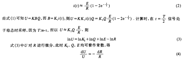 對(duì)于銅電阻,R=R0【1+a(T-T0)】。其中:i(t)為信號(hào)電流;E為電壓源幅值;R為銅電阻值;τ為時(shí)間常數(shù);K,K1,K2為變換系數(shù);T為激磁信號(hào)周期;a為銅電阻溫度系數(shù)a=3.93×10-3/℃。