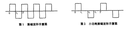 目前,有圖1所示激磁波形。為降低激磁功率,本文嘗試圖2所示的間歇式波形。